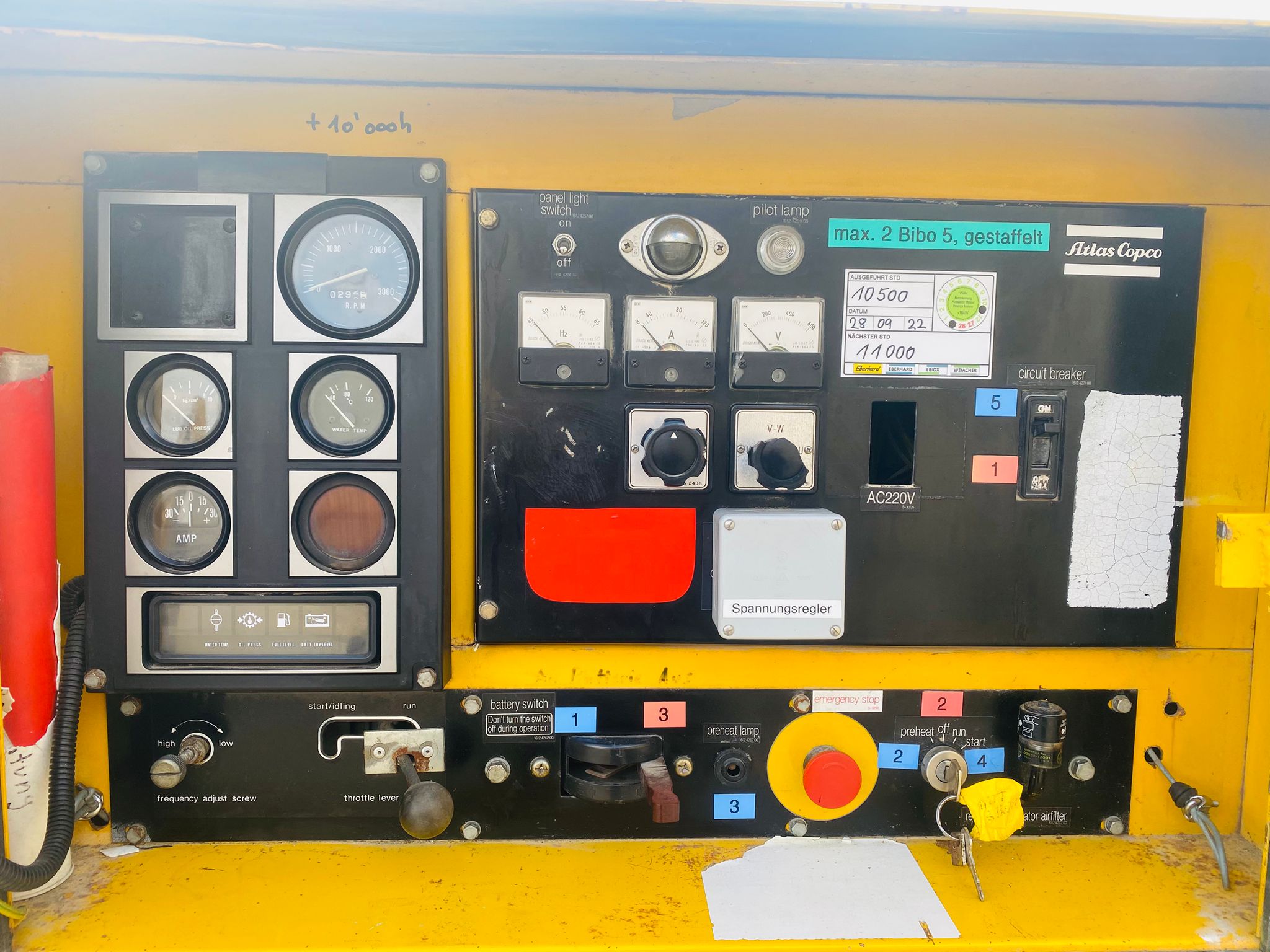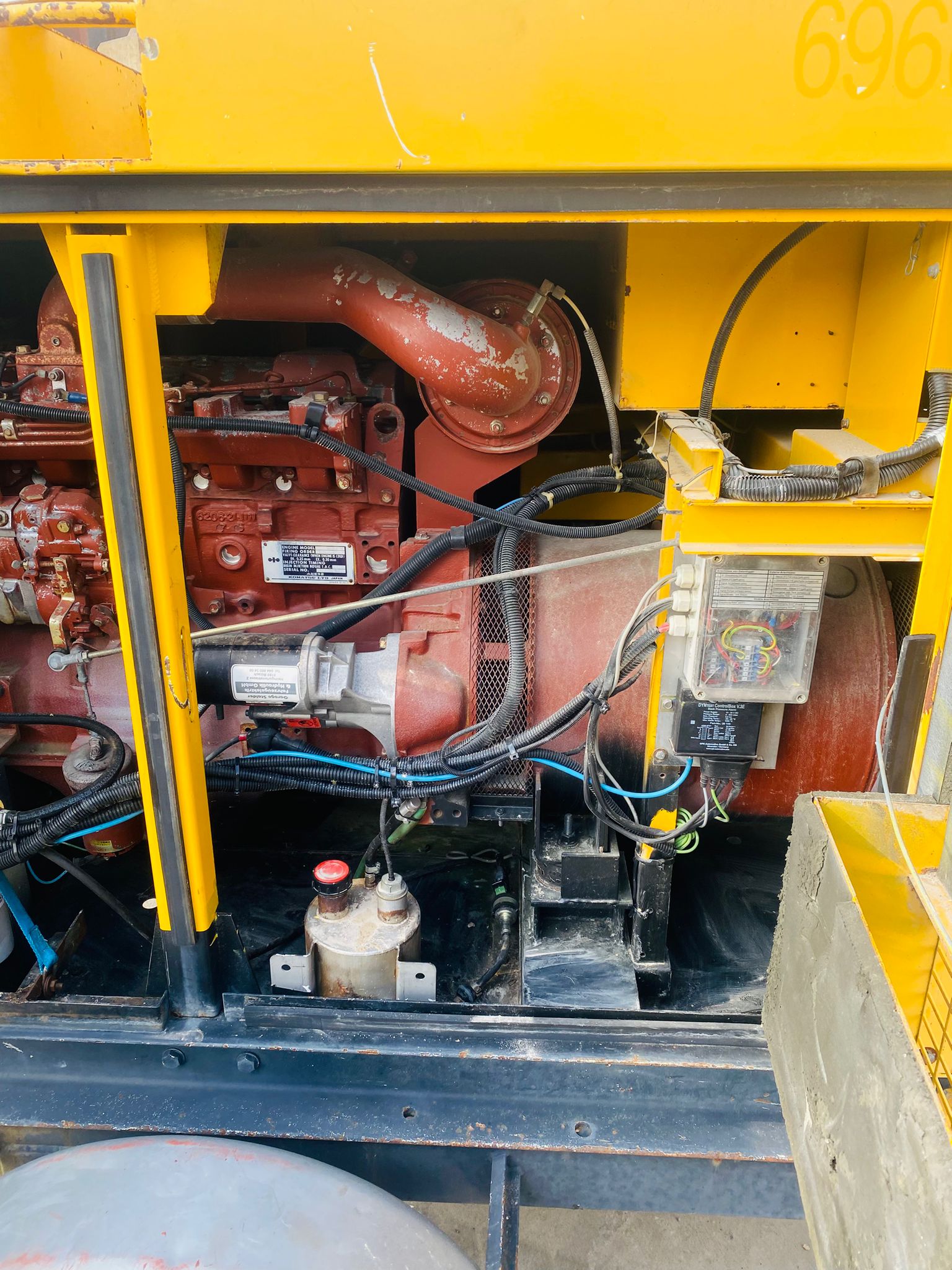 CE | 3 Phase+n | 50KVA | Rated voltage 380-440V | Rated Current 76-65.6 A | Frequency 50/60 HZ | Power factor 0.8 | Poles 4 | Komatsu Diesel engine 6D95L | Rated output 48.5 KW | 1500/1800RPM | 1270KG | Made in Japan
