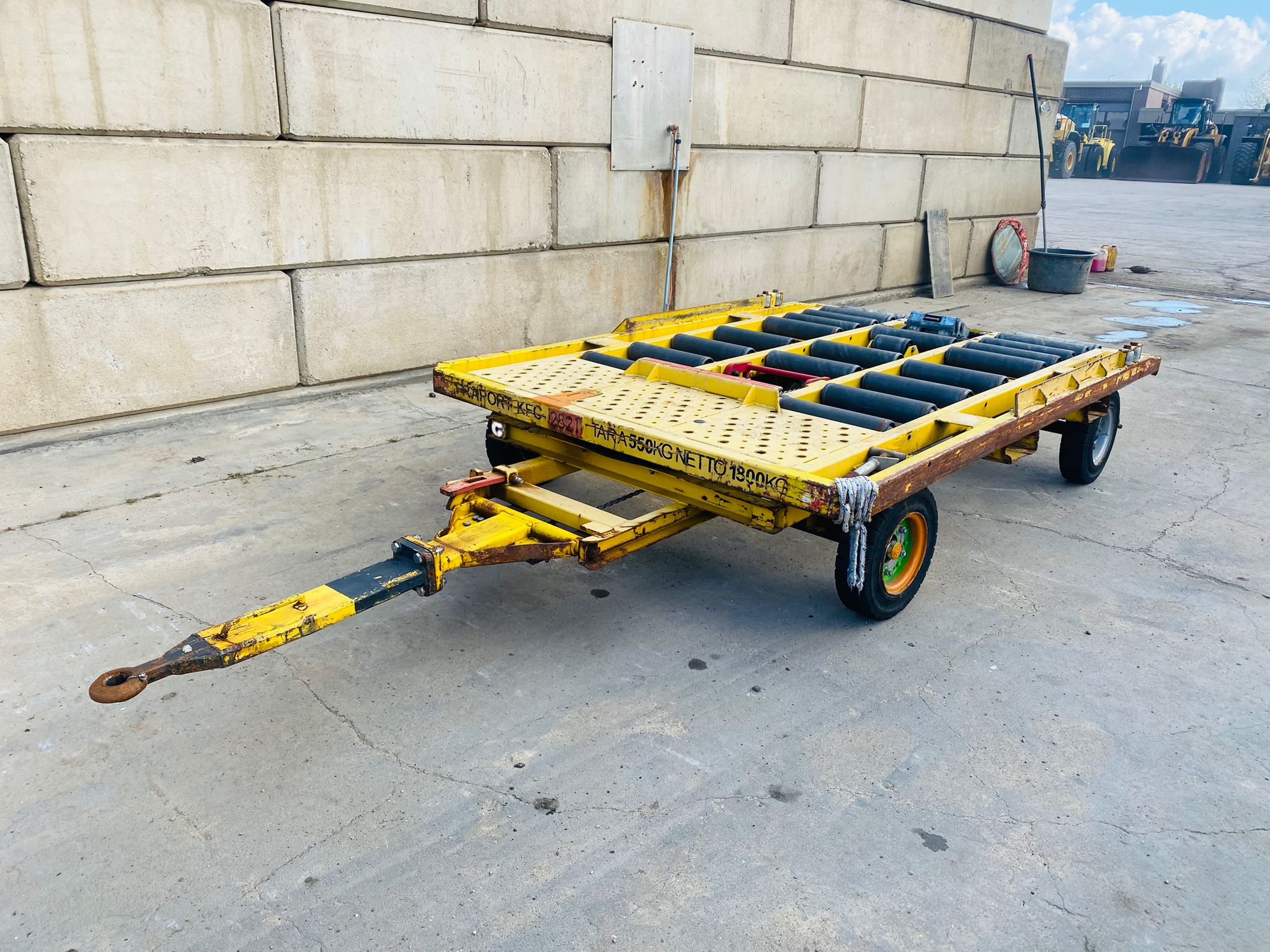 Load length: 155 cm | Total platform length: 250 cm | Total width: 135 cm | Height: 55 cm | Load capacity: Approx. 1,800 kg | Max 25km/h